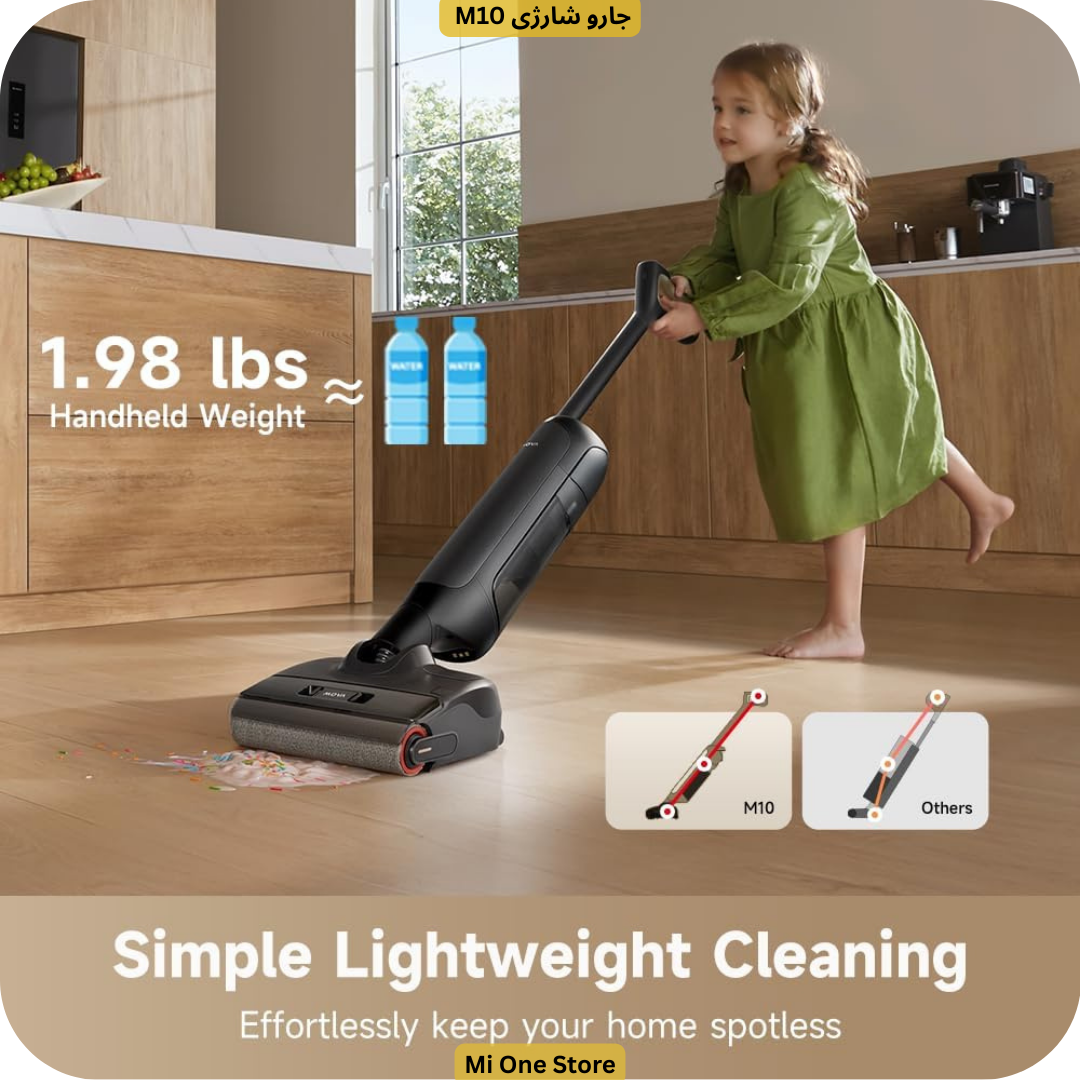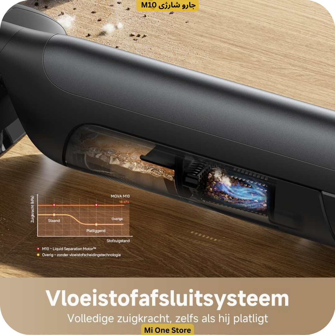 جارو شارژی M10 دارای فیلتر HEPA است که ذرات ریز گردوغبار و آلرژنها را بهطور مؤثر جذب میکند. این ویژگی برای افرادی که حساسیت یا آلرژی دارند بسیار مهم میباشد. Mova M10 برای انواع سطوح از جمله کفپوش سخت، چوب طبیعی، لمینت و سطوح چندگانه طراحی شده و عملکردی عالی در تمامی آنها دارد.