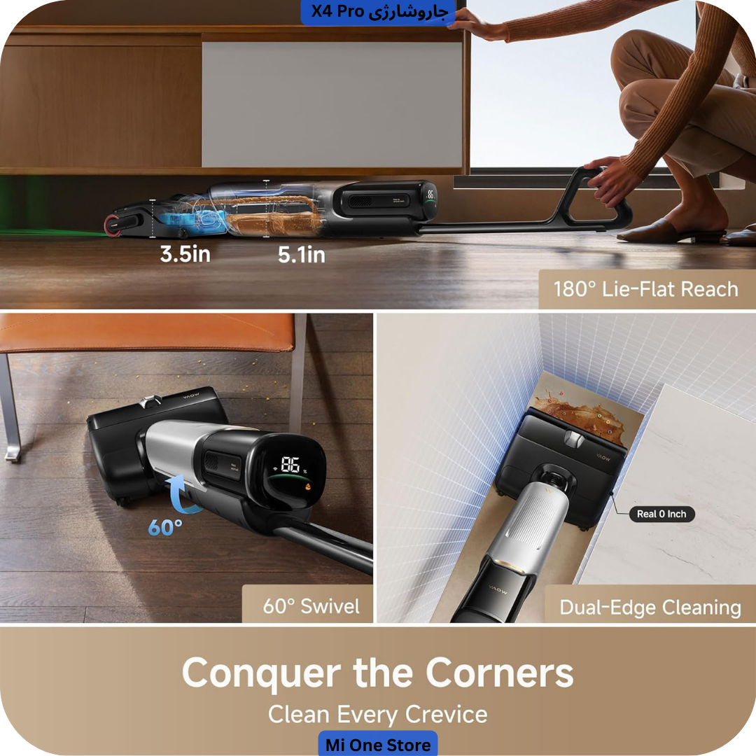 جاروشارژی Mova X4 Pro Wet یک دستگاه ترکیبی مدرن برای نظافت سطوح سخت داخل خانه است. یعنی هم جارو مکشی و هم زمین‌شویی مرطوب را با هم انجام می‌دهد. جاروشارژی X4 Pro با ویژگی‌هایی فراتر از یک جاروبرقی ساده ساخته شده است، تا مناسب خانه‌های امروزی با نیاز به تمیزکاری دقیق، سریع و راحت باشد. ویژگی‌های برجسته X4 Pro Wet Dry Vacuum Cleaner باعث می‌شوند که برای کسانی که دنبال یک نظافت کامل (تمیزکردن گرد و غبار، مو، لکه، و حتی چربی یا مایعات ریخته‌شده) هستند، انتخابی مناسب باشد. ما استفاده از این جاروشارژی را به شما پیشنهاد می‌کنیم.