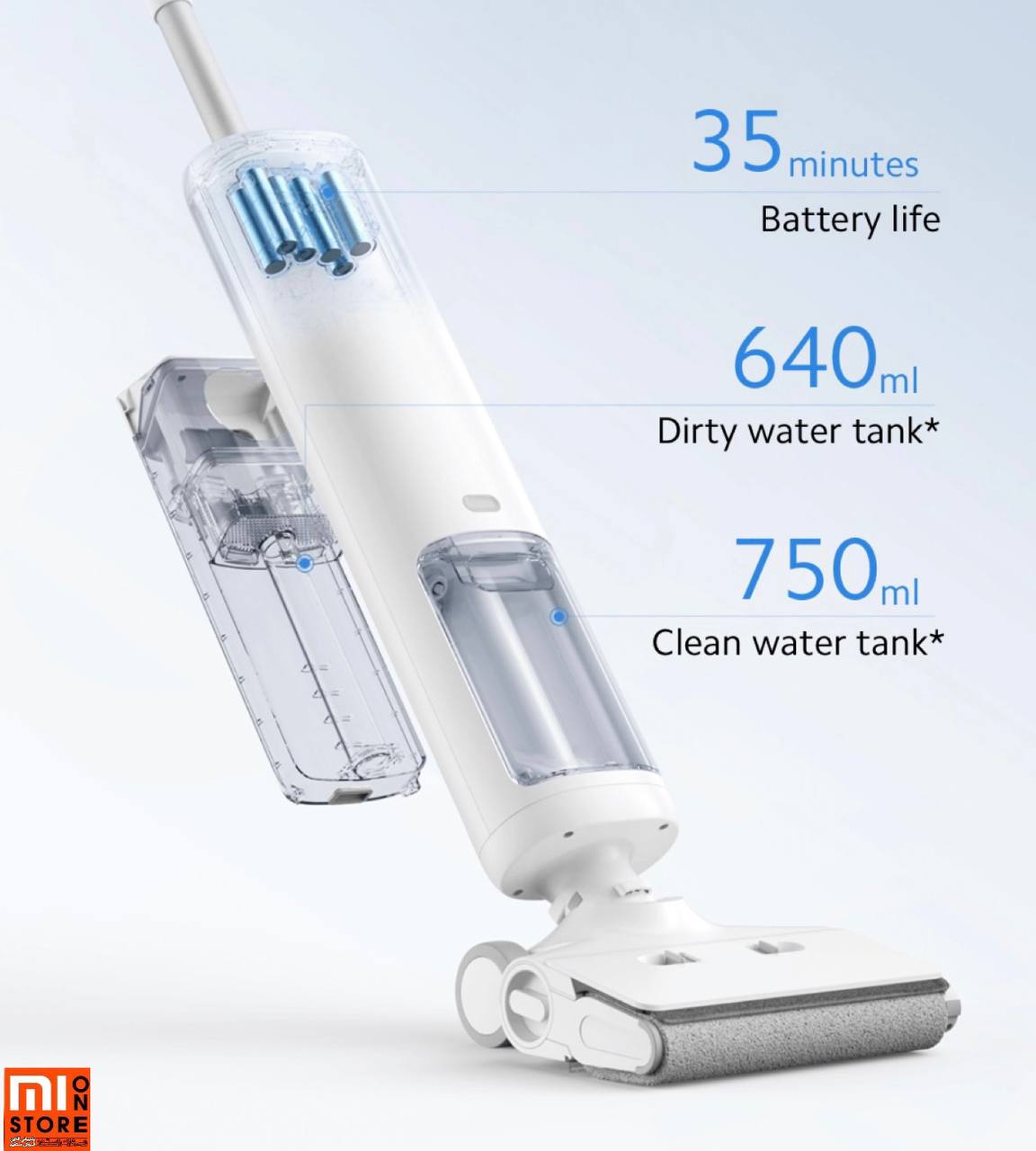 - جارو شارژی W10Pro دارای مخزن آب کثیف 640 میلی لیتر است و مخزن آب تمیز 750 میلی لیتر است.