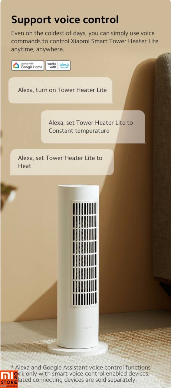 • شما می توانید در سرد ترین روزها، به سادگی از دستورات صوتی در هر زمان برای کنترل  Smart Tower Heater Lite در هر مکان استفاده کنید.