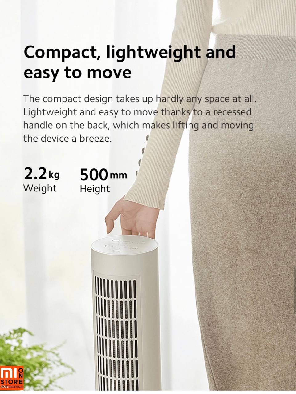 • هیتر بخاری هوشمند شیائومی مدل Smart Tower Heater Lite بسیار جمع و جور، سبک وزن است و به همین دلیل این هیتر برقی به سختی فضایی را اشغال می کند.