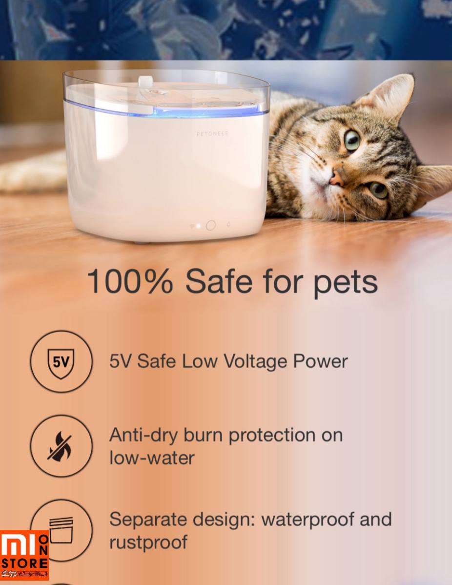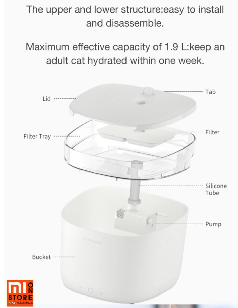 - Xiaomi PETONEER Fresco Mini Pro Smart Pet Fountain WF001 دارای نشانگر نور ملایم می باشدکه روشن دریک نگاه است.
