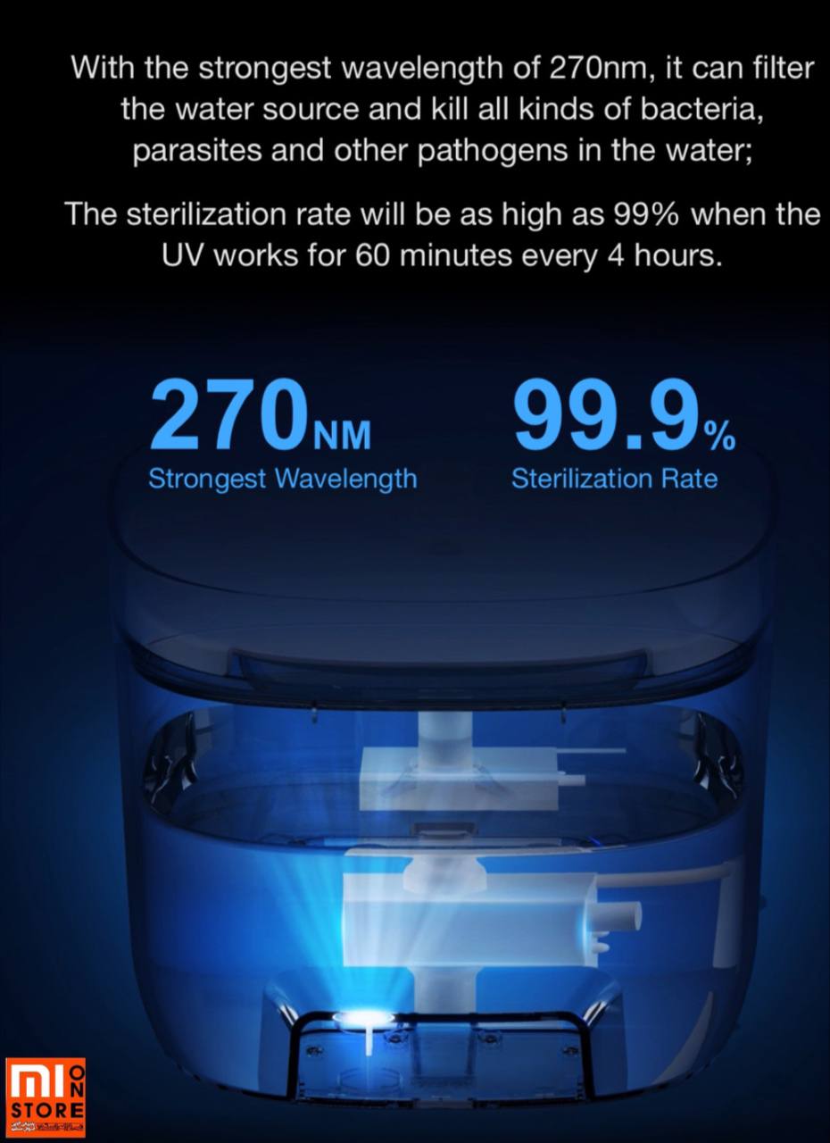 - نور UV داخلی، به طور موثر استریل می شود با قوی ترین طول موج 270 نانومتر، می تواند منبع آب را فیلتر کرده و انواع باکتری ها، انگل ها و سایر عوامل بیماری زا را در آب از بین ببرد.