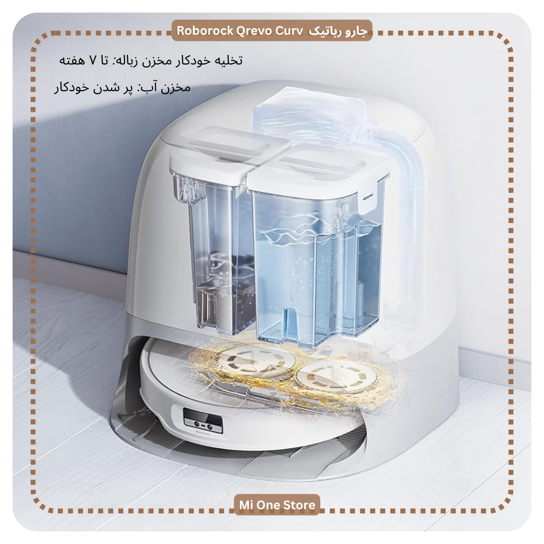 جارو رباتیک روبوراک Qrevo Curv دارای مخزن آب می باشد این دستگاه به گونهای طراحی شده است که برای تیکشی و تمیزکاری مرطوب استفاده شود.