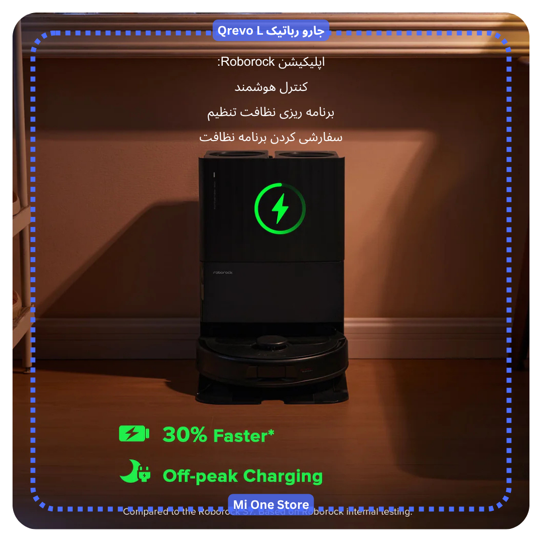 جارو رباتیک روبوراک مدل Qrevo L دارای کنترل هوشمند اپلیکیشن می باشد و شما می توانید به راحتی نظافت خود را از طریق اپلیکیشن Roborock سفارشی نماید. برنامههای نظافت را تنظیم، اتاقها یا مناطق خاصی را انتخاب، نظافت موقت را شروع کنید یا در صورت نیاز از مناطق خاصی صرف نظر نماید.