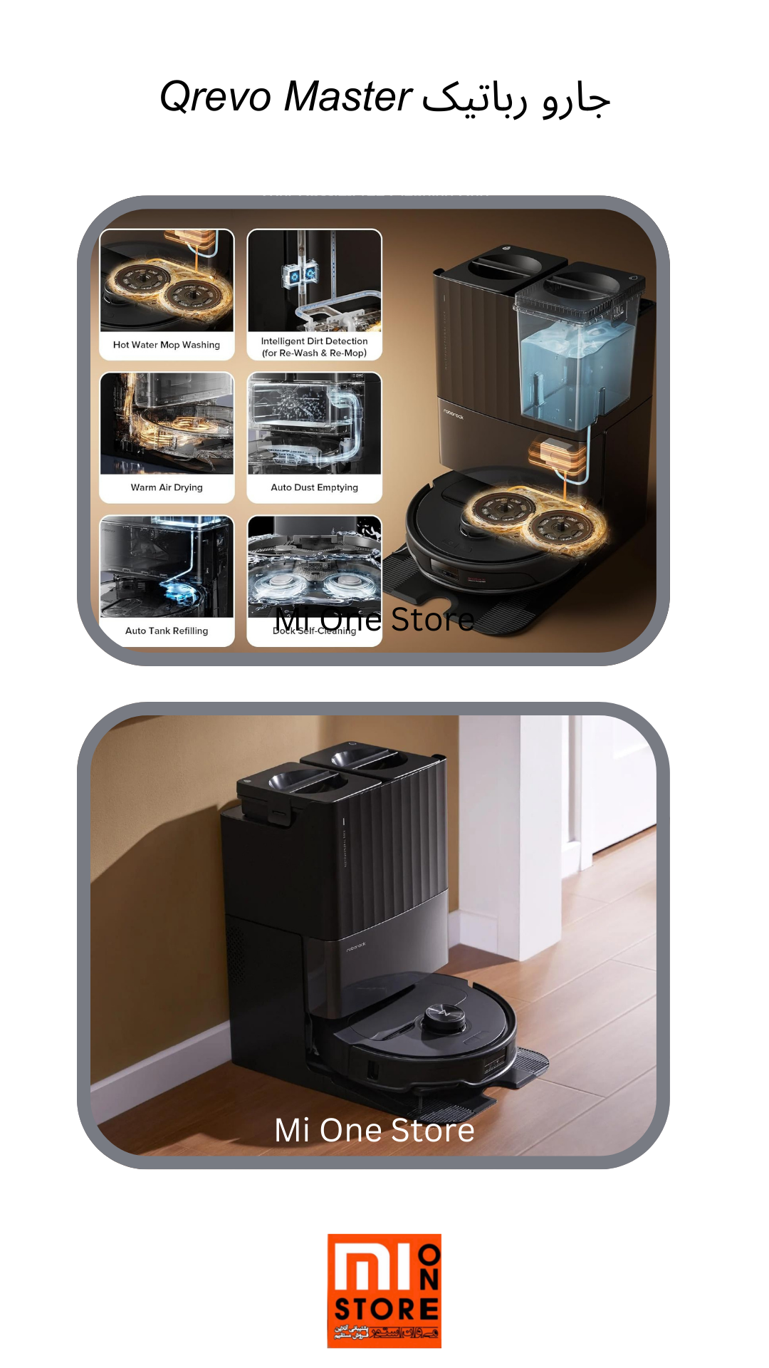 جارو رباتیک Qrevo Master دارای داک می باشد که از آب گرم و هوای گرم برای شستن و خشک کردن موپ ها استفاده می کند و می تواند به طور موثر باکتری ها، کپک ها و بوی بد را محدود کند و در عین حال تمیز کردن کارآمد را تضمین نماید.