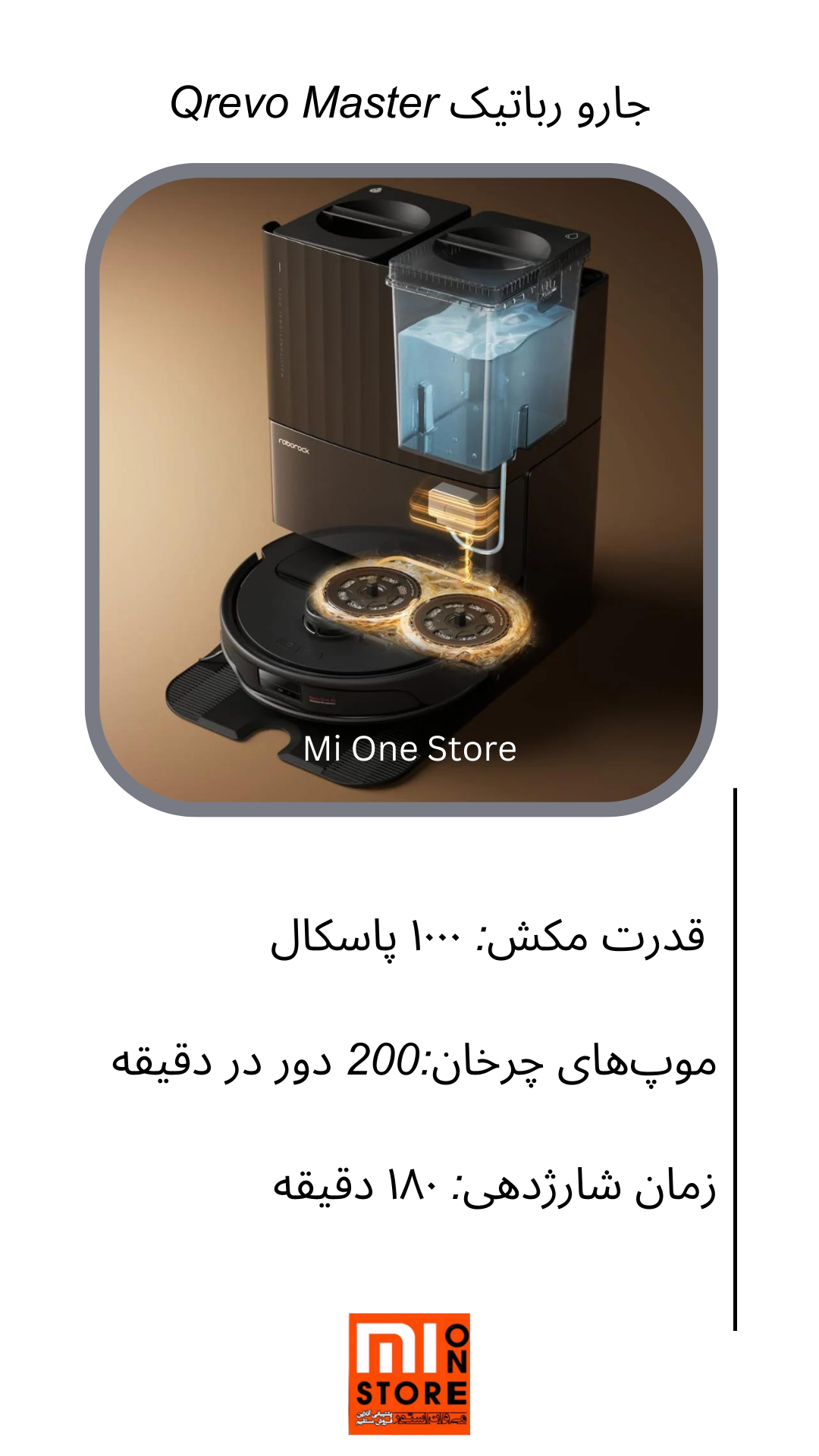 جارو رباتیک روبوراک Roborock Qrevo Master دارای سیستم تشخیص کثیفی هوشمند می باشد، این ربات از آب داغ برای شستشوی کامل پاک کننده استفاده میکند و برای کفهای بدون لک از نواحی بسیار آلوده بازدید مینماید.