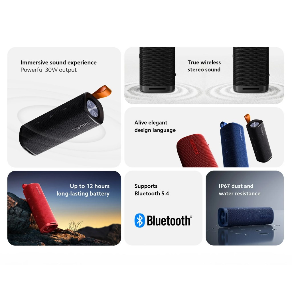 اسپیکر قابل حمل شیائومی مدل Xiaomi Sound Outdoor با توان خروجی نامی 30 وات، صدایی قدرتمند و فراگیر را ارائه می‌دهد. این اسپیکر با ترکیب یک درایور 20 واتی و یک درایور 10 واتی، توانایی پخش صدای بلند و شفاف را دارد. با این توان خروجی، می‌توانید در هر محیطی از صدای با کیفیت و پرقدرت این اسپیکر لذت ببرید، چه در یک پیک‌نیک دوستانه، چه در یک مهمانی در فضای باز