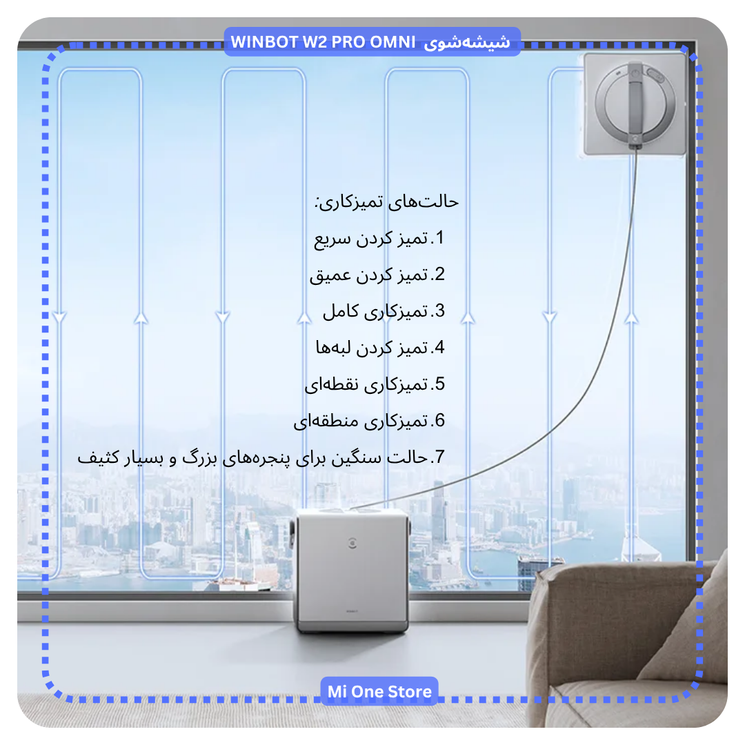 ربات شیشه‌شوی W2 PRO دارای هفت حالت تمیز کردن است که شامل: