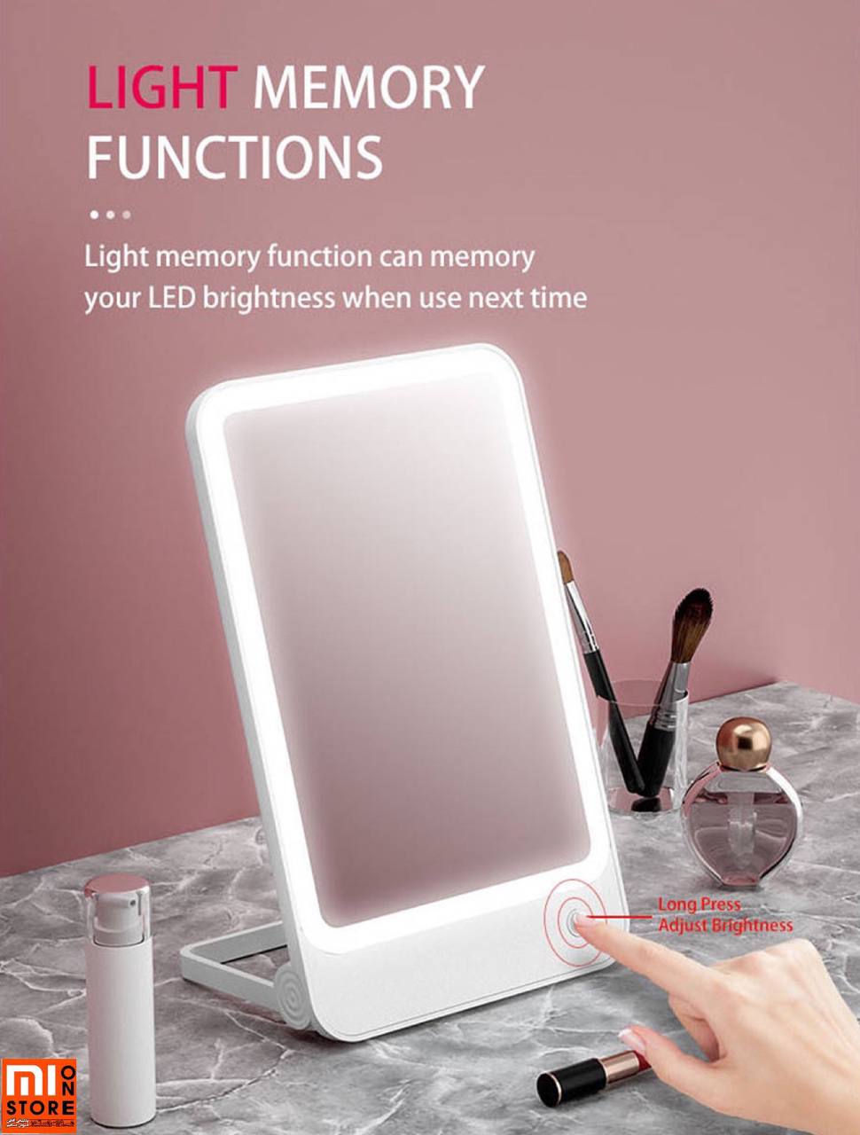 - آیینه میکاپ R1 دارای تغییر رنگ نور به سه رنگ زرد، سفید و نرمال می باشد و قابلیت ذخیره نور هوشمند دارد