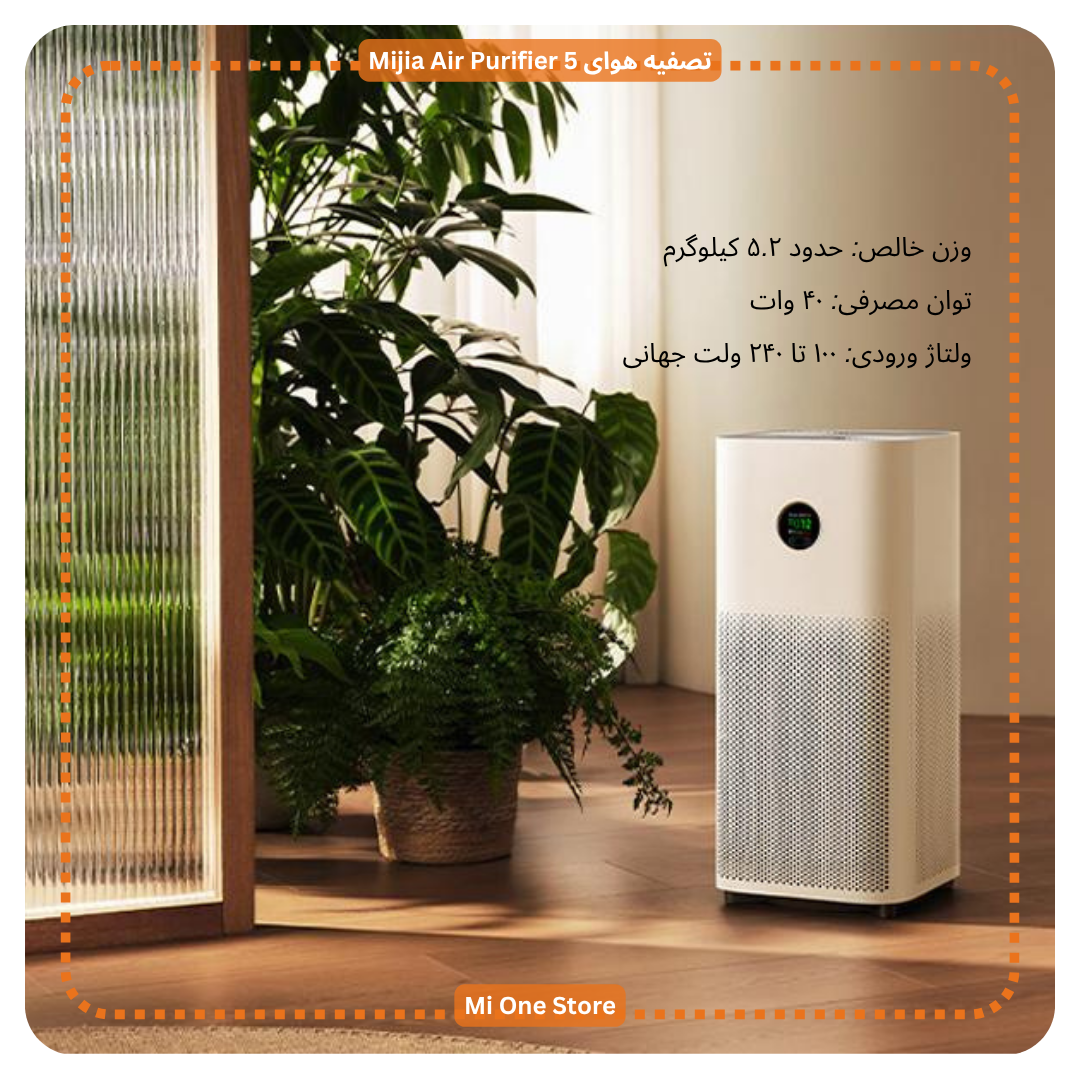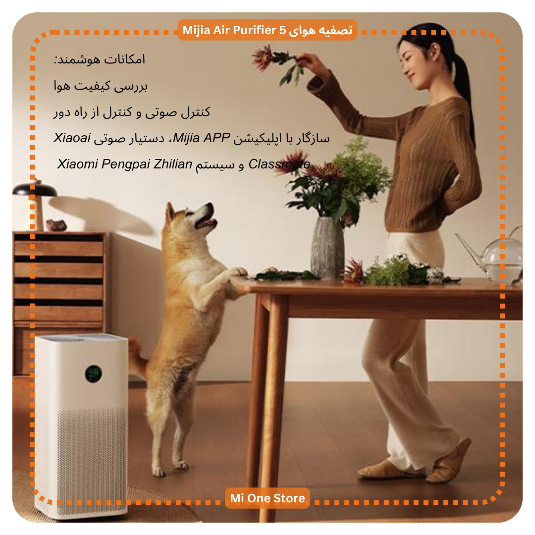 دستگاه تصفیه هوای 5 قابلیت اتصال به خانه هوشمند و کنترل از راه دور را دارد. این دستگاه با اپلیکیشن Mijia APP، دستیار صوتی Xiaoai Classmate و سیستم Xiaomi Pengpai Zhilian سازگار است. به کمک این امکانات، میتوانید دستگاه را از راه دور کنترل کرده، کیفیت هوا را بررسی کنید و حتی با فرمان صوتی آن را مدیریت نمایید. این ویژگی، دستگاه را به بخشی هوشمند از خانه مدرن شما تبدیل میکند.