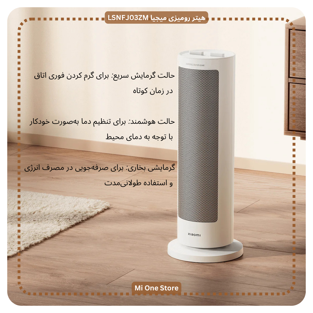 - هیتر رومیزی میجیا LSNFJ03ZMبا توان بالای 2000 وات قادر است بهسرعت فضای اتاق را گرم کند و برای استفاده در فضاهای خانگی یا اداری ایدهآل می باشد.