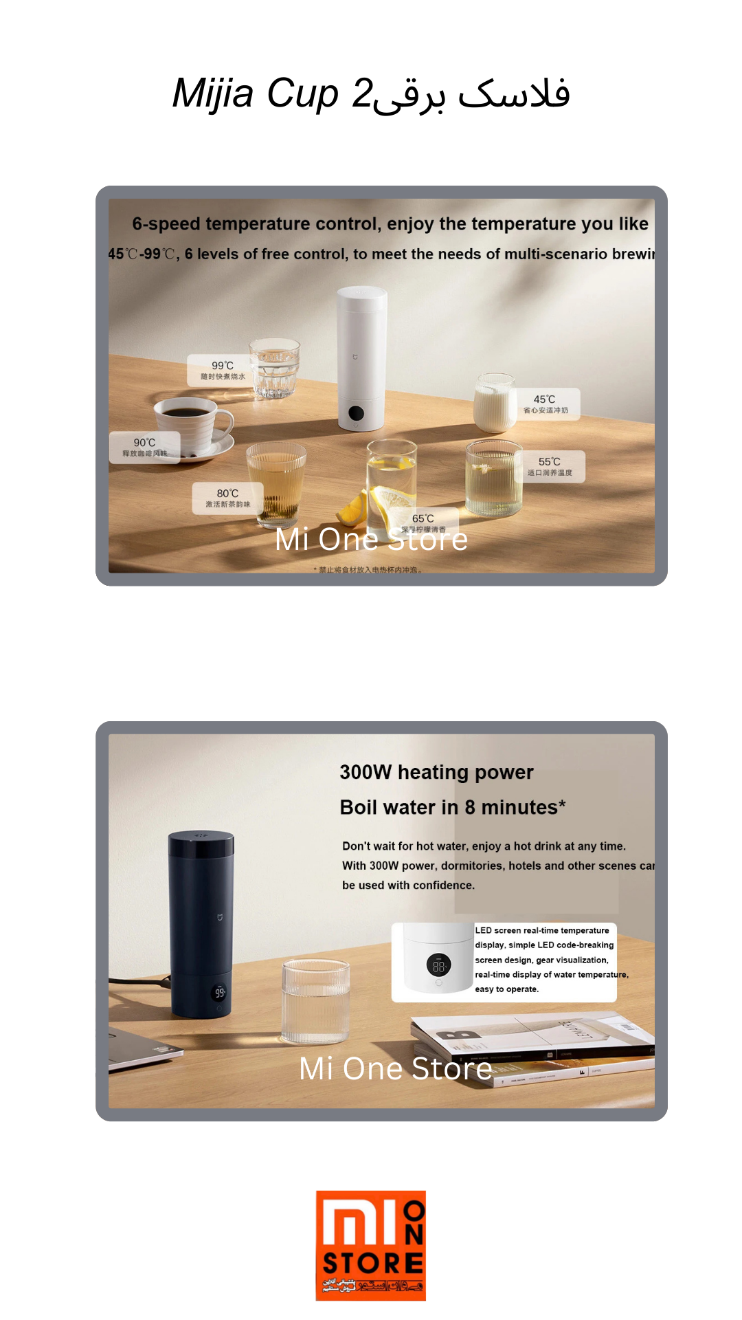 - فلاسک برقی قابل حمل شیائومی مدل Mijia Portable Electric Cup 2 با مصرف انرژی بهینه و ولتاژ ورودی 220 ولت، می تواند به سرعت آب را جوشانده و آماده استفاده کند.