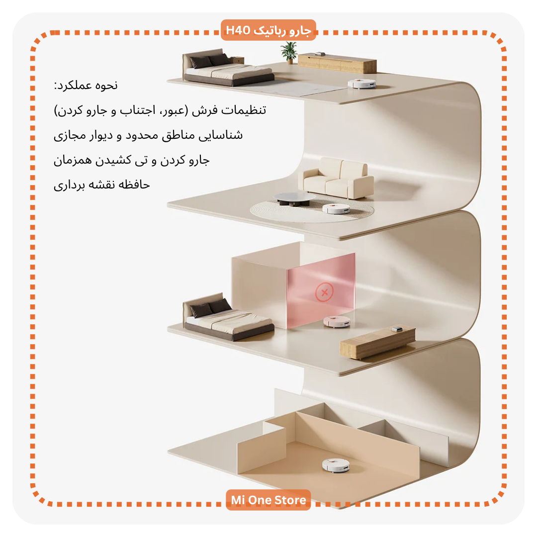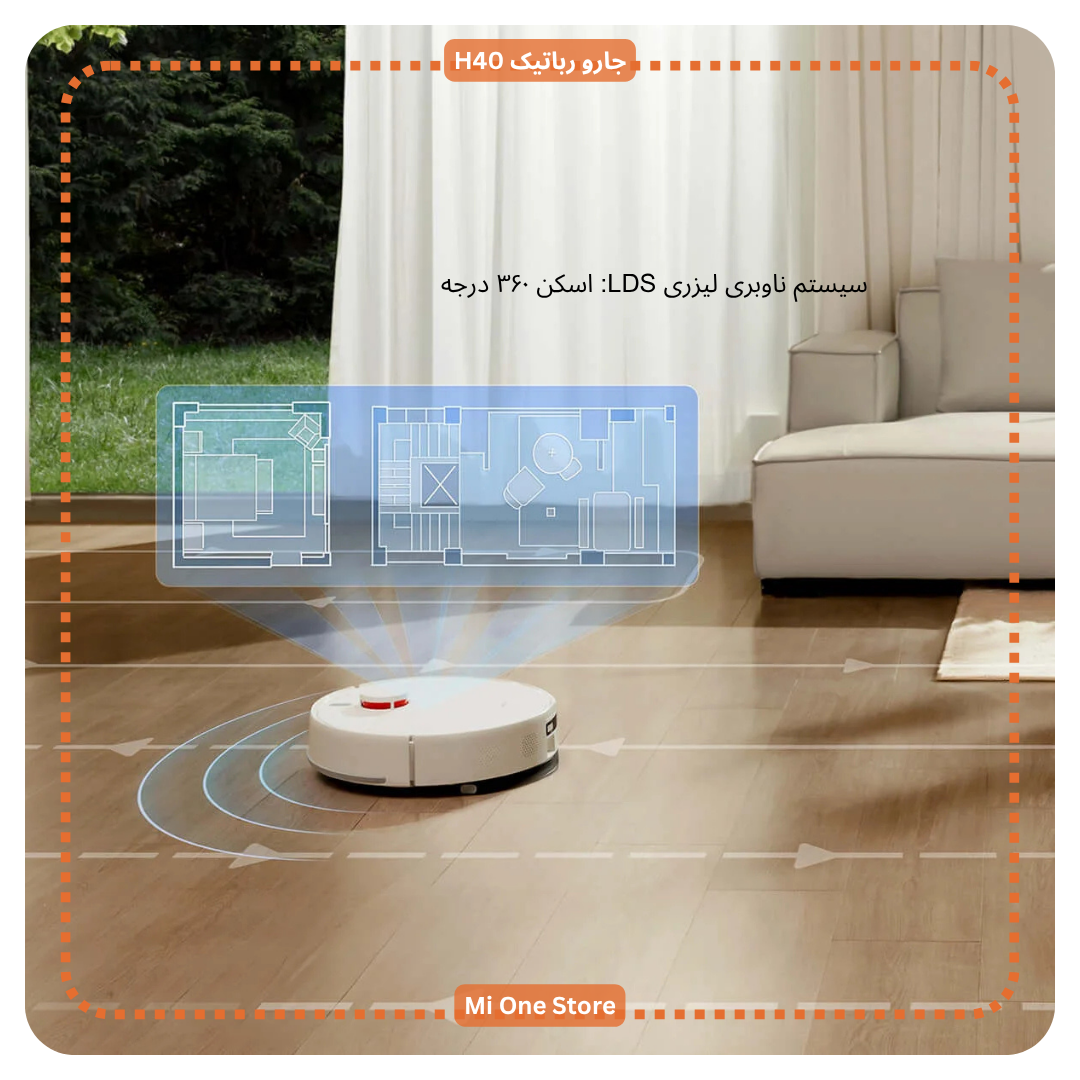 Xiaomi Robot Vacuum H40 دارای سیستم ناوبری لیزری LDS همراه اسکن ۳۶۰ درجه و نقشهبرداری چندطبقه است که میتواند خانه را با دقت بالا اسکن کند و نقشههای سهبعدی و چندطبقه را در اپلیکیشن Xiaomi Home ایجاد نماید. این قابلیت به شما اجازه میدهد تا مسیرهای تمیزکاری را دقیق و سریع برنامهریزی کنید. چند حسگر بهصورت هوشمند توانایی شناسایی پلهها، موانع انعطافپذیر و آستانه تا ۲۰ میلیمتر را دارند.