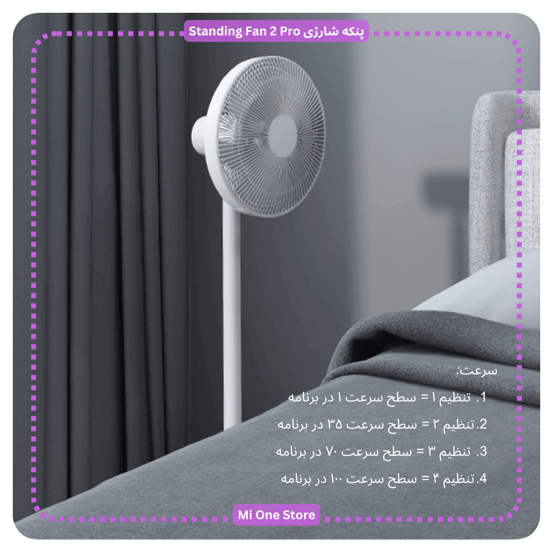 - در این پنکه شیائومی تنظیمات سرعت مربوط به تنظیمات روی پنکه: