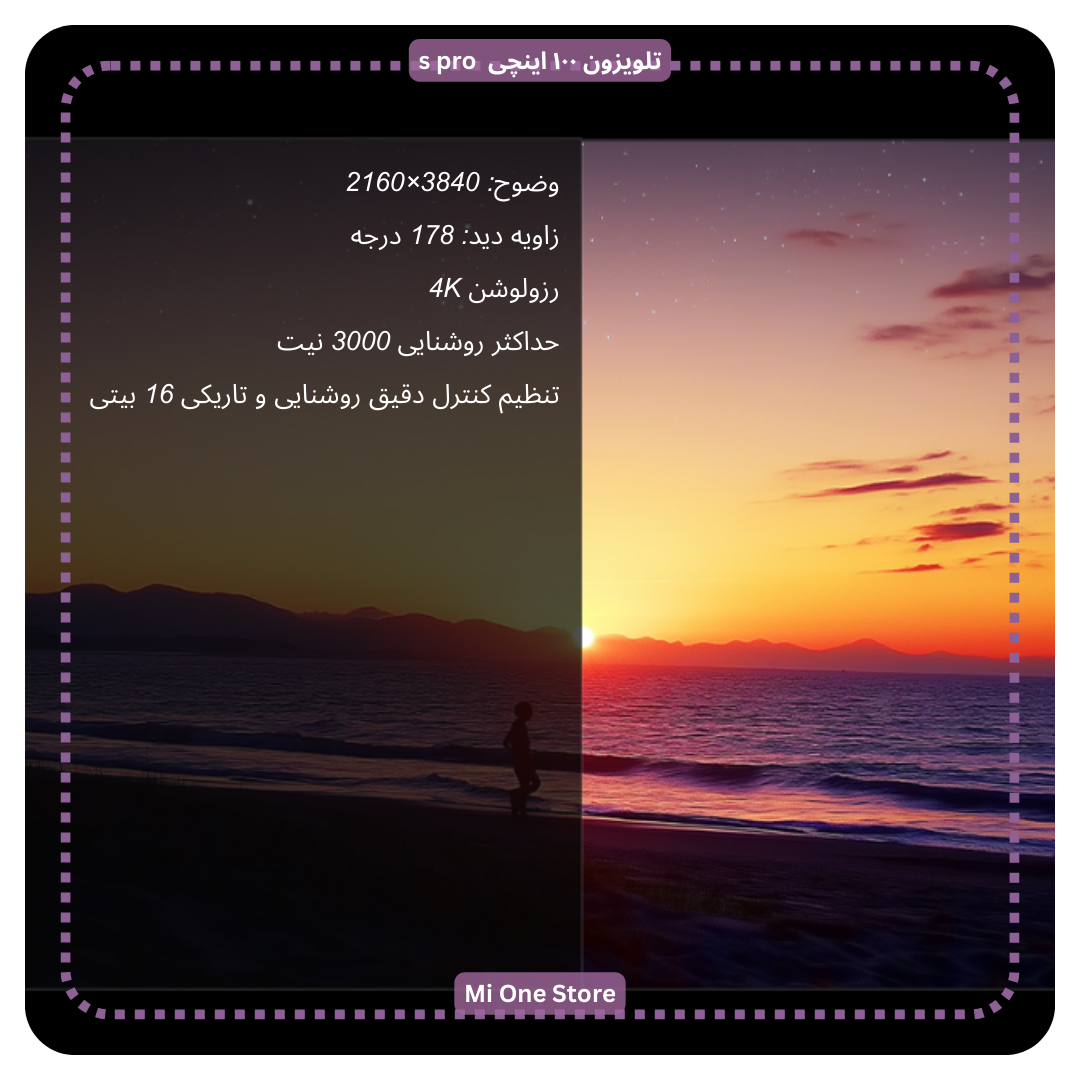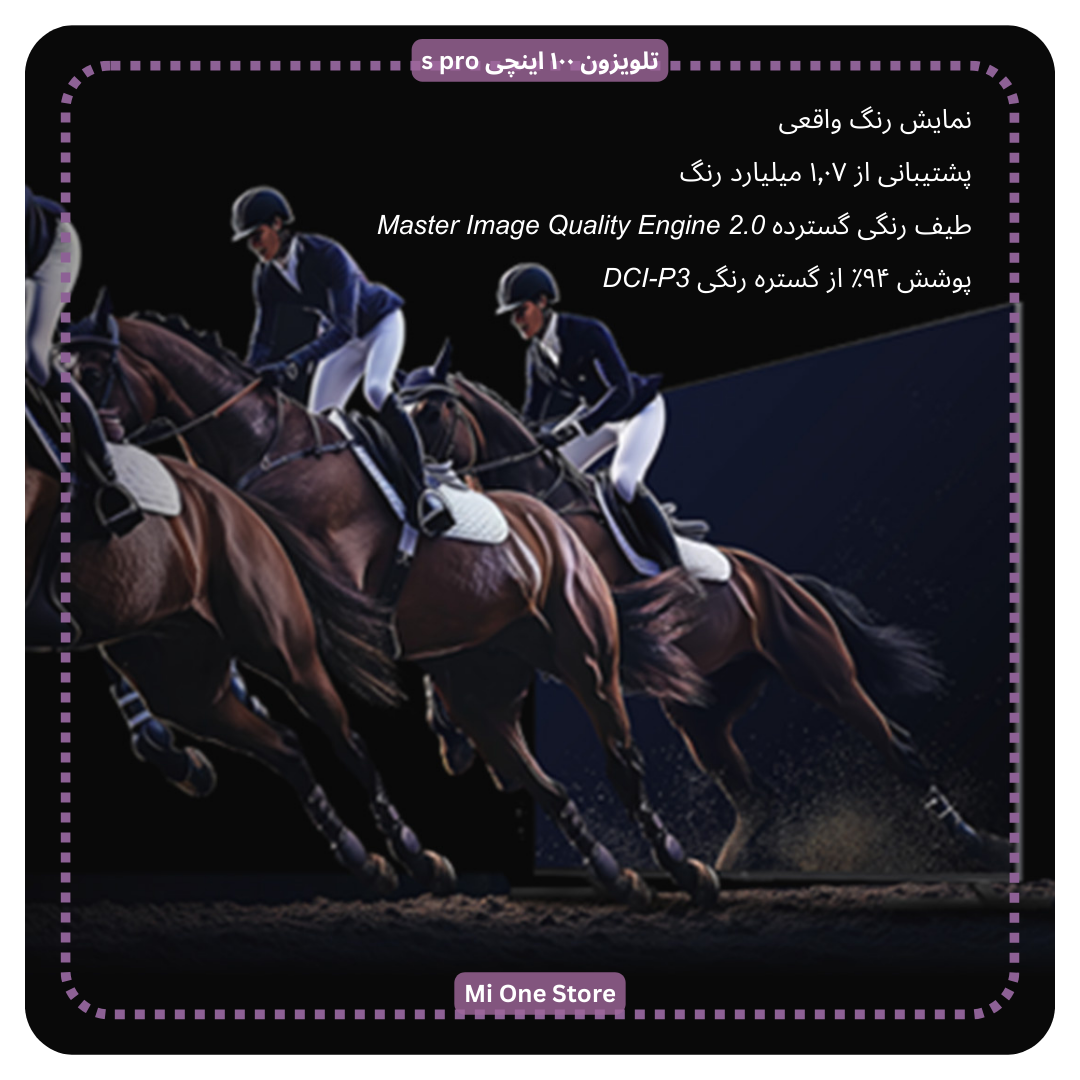 - کیفیت تصویر تلویزون ۱۰۰ اینچی شیائومی مدل s pro با پنل ۱۰۰ اینچی و رزولوشن 4K، تصاویر را با وضوح و جزئیات بالا نمایش میدهد.