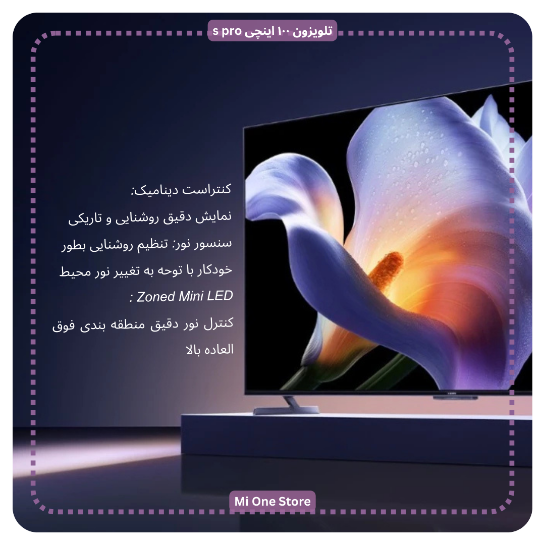 - سنسور نور در Xiaomi TV S Pro 100 Mini LEDمی تواند تغییرات نور محیط را حس کند و روشنایی را به طور خودکار تنظیم نماید.