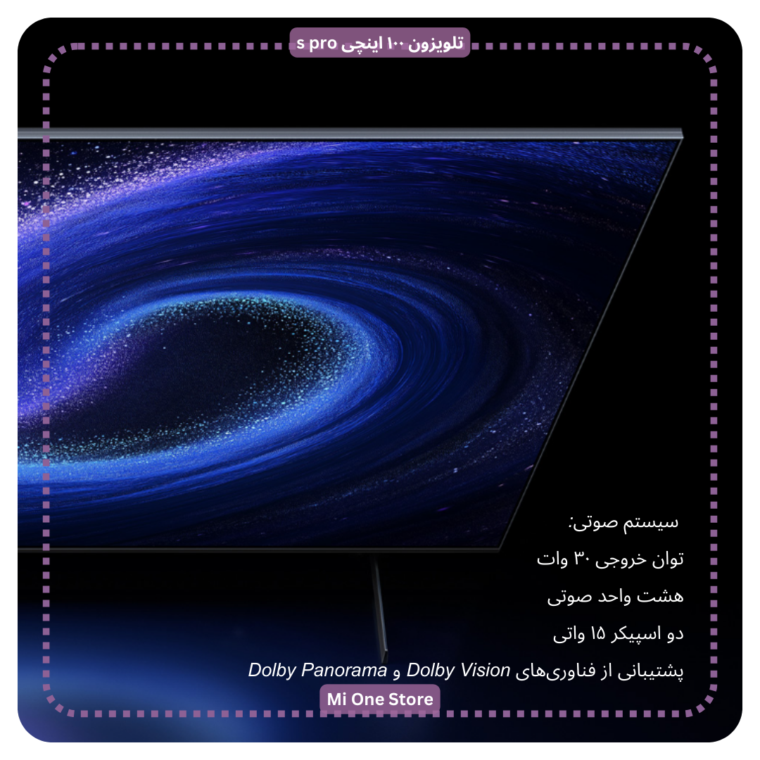 - Xiaomi TV S Pro 100 Mini LED با پشتیبانی از فناوریهای Dolby Vision و Dolby Panorama تجربهای سینمایی از صدا و تصویر را برای کاربران به ارمغان میآورد.