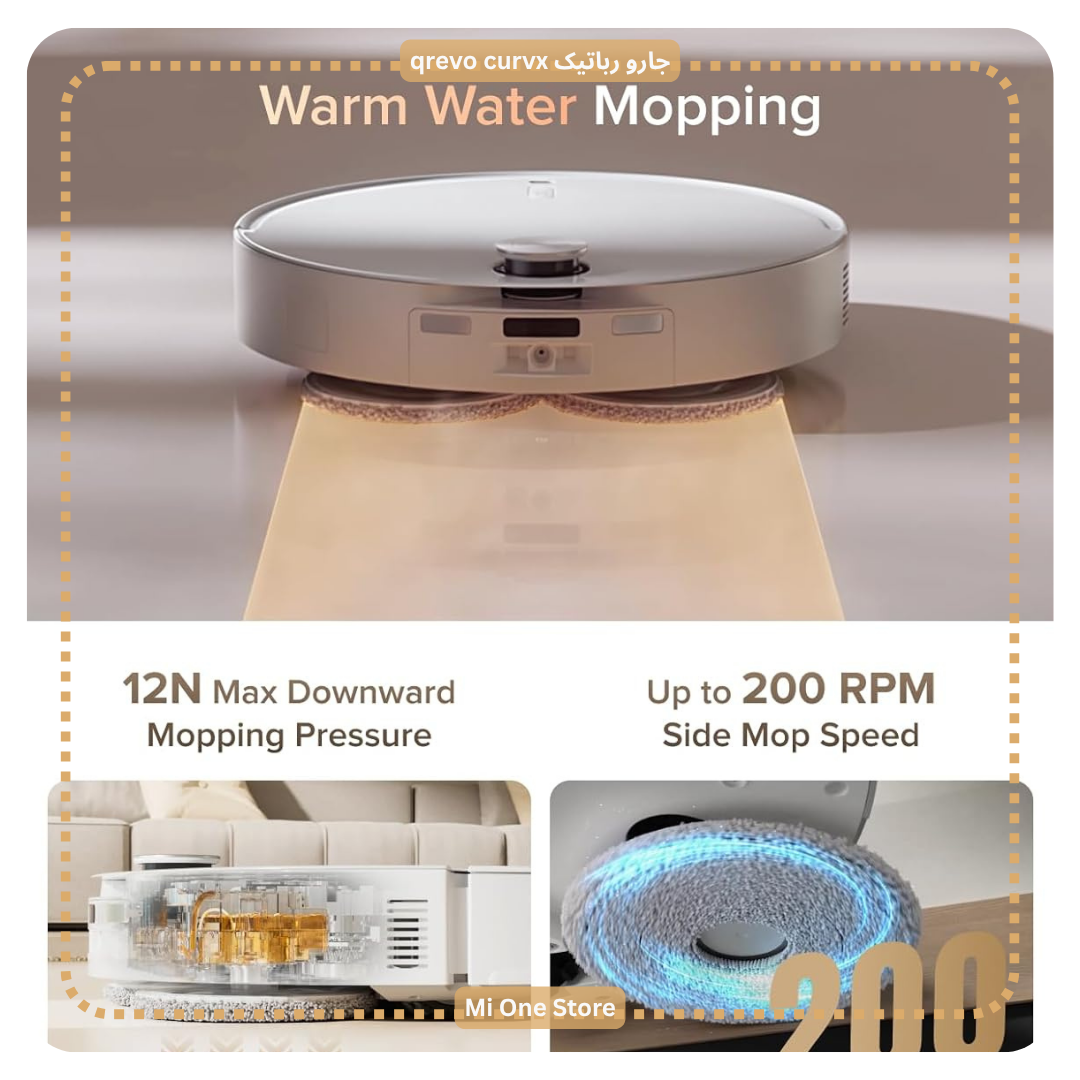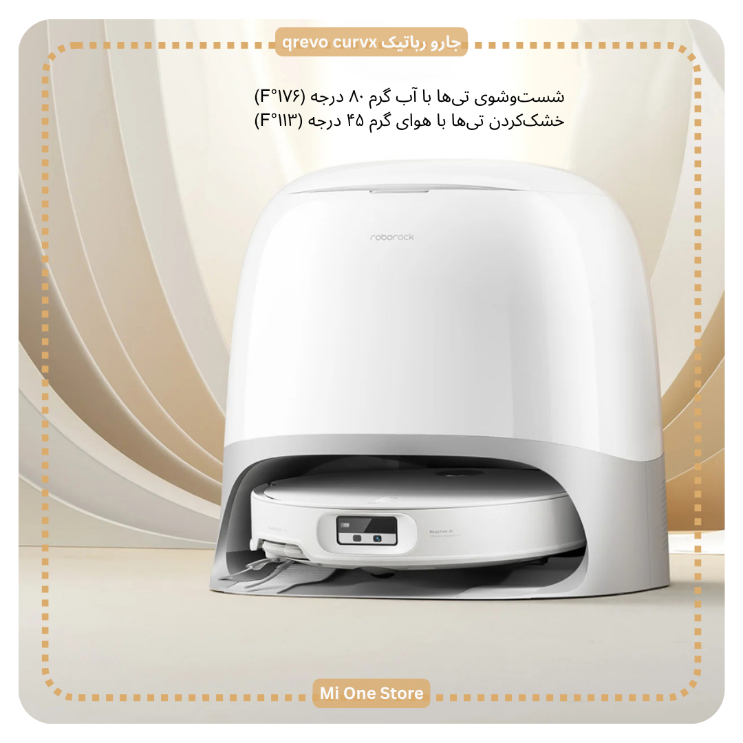 سیستم تیشوی Roborock Qrevo Curv X از آب داغ با دمای ۸۰ درجه سانتیگراد برای شستوشوی تیها استفاده میکند. این ویژگی باعث از بین رفتن کامل لکههای سرسخت، چربیها و باکتریها میشود و تمیزی عمیق، بهداشتی میدهد که تیها پس از هر بار شستوشو کاملاً تمیز، بدون بو و بهداشتی باشند.