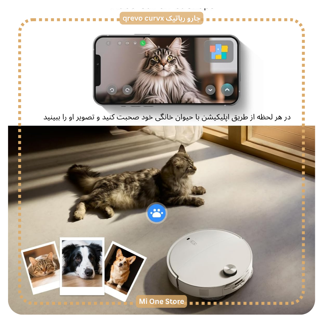 Roborock Qrevo Curv X ویژگی جذاب دیگری که این مدل را از رقبا متمایز میکند، امکان تماس ویدیویی زنده (Video Call) است. شما میتوانید در هر لحظه از طریق اپلیکیشن با حیوان خانگی خود صحبت کنید و تصویر او را ببینید.