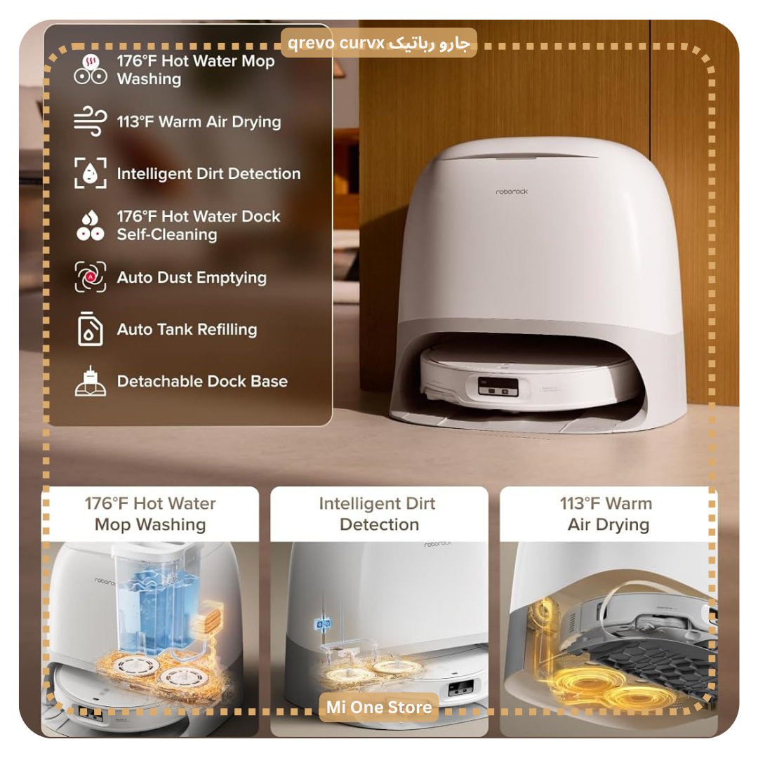 داشتن یک جاروبرقی رباتیک کارآمد میتواند تفاوت بزرگی در راحتی زندگی روزمره ایجاد کند. جارورباتیک روبوراک مدل Roborack qrevo curvx جدیدترین محصول برند معتبر Roborock است که با ترکیب قدرت مکش فوقالعاده، طراحی باریک، نظافتی عمیق و بینقص را برای خانهی شما به ارمغان میآورد. جارورباتیک qrevo curvx دارای فناوری هوش مصنوعی برای تشخیص موانع و حرکت هوشمند در هر شرایط نوری میباشد. roborock Qrevo CurvX Robot Vacuum دارای داک چندمنظوره پایگاه هوشمند و خودکار برای نظافت کامل است. ما استفاده از این جارورباتیک هوشمند را به شما پیشنهاد میکنیم.