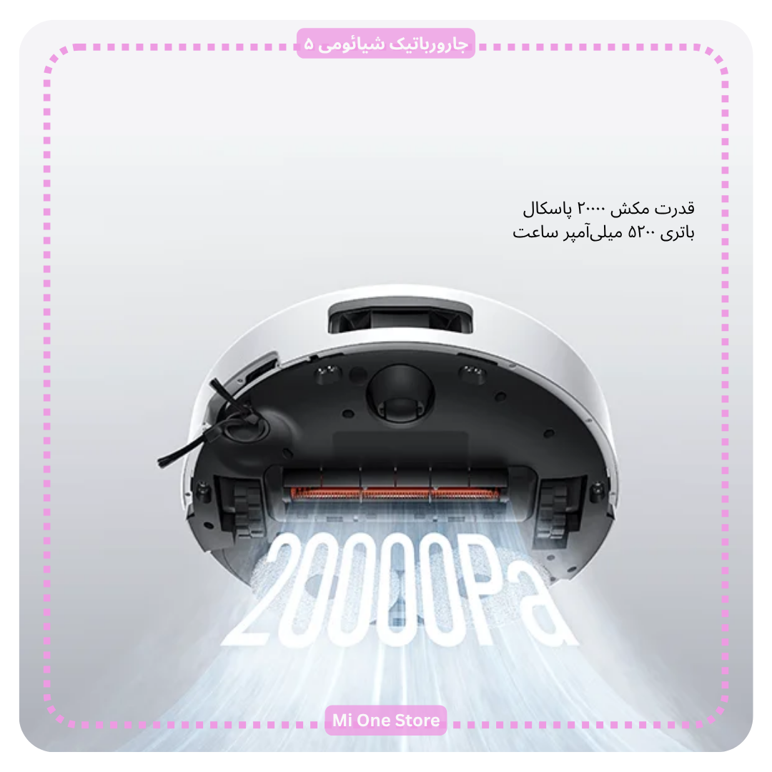 قدرت مکش جارورباتیک شیائومی مدل 5 دارای قدرت مکش ۲۰۰۰۰ پاسکال است که برای جمعآوری هر نوع آلودگی، گرد و غبار، ذرات ریز و حتی موی حیوانات خانگی ایدهآل میباشد. این سطح از مکش، حتی در شرایط سخت نیز نظافت مؤثر و عمیقی دارد این دستگاه حذف کامل گرد و غبار و آلودگی را تضمین میکند.